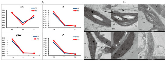 In repeated experiments, the third set of fresh leaves from both cultivars was used for photosynthesis evaluation. A LI-COR 6400 portable gas analysis system (Lincoln, NE, USA) was used with a built-in light source of 1000 μmol photons m−2·s−1. Additionally, the same fresh leaves from rapeseed plants were used for Transmission Electron Microscope Observations. In addition, the Transmission Electron Microscope (Tokyo, Japan) observations were conducted following the methodology described by Wei et al. [17].