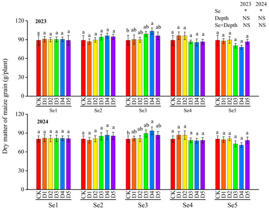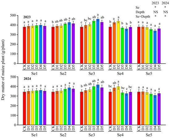 4.1. Effect of Selenium Application Rate and Depth on Dry Matter Quality of Fresh Sweet Maize