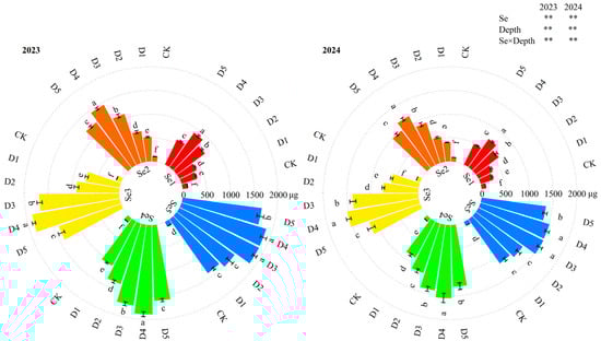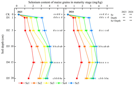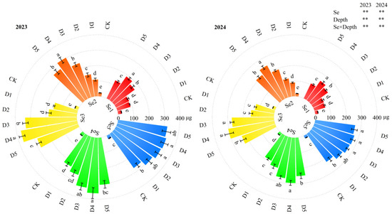 Peng, Z.; Sun, H.; Guo, Y.; Chen, Y.; Yin, X. Combining Depth and Rate of Selenium Fertilizer Basal Application to Improve Selenium Content and Yield in Sweet Maize. Agronomy 2025, 15, 775. https://doi.org/10.3390/agronomy15040775