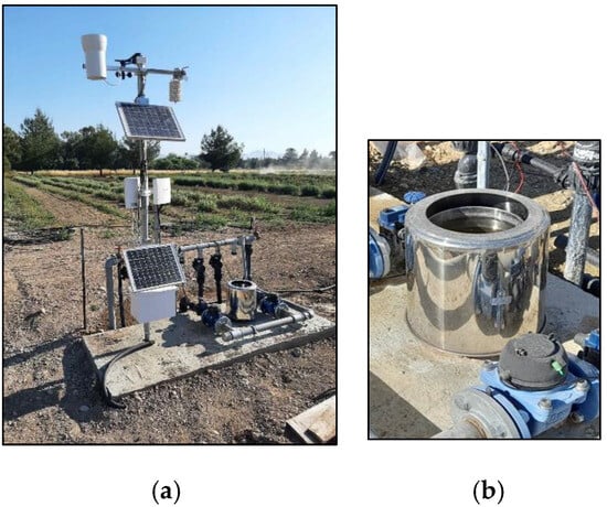 A telemetric weather station (a) and a reduced-size 20 cm diameter pan evaporimeter (b).