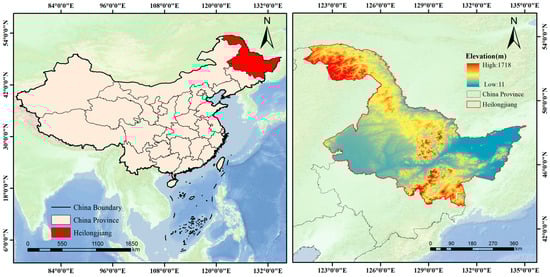 Heilongjiang Province is located in northeastern China, with 12 prefectural-level cities and one region (Daxinganling Region) under its jurisdiction, covering a total area of 473,000 square kilometers. The province spans four major water systems: the Heilongjiang, Ussuri, Songhua, and Suifen rivers. It has a cold-temperate and temperate continental monsoon climate, with an average annual precipitation of 400–800 mm, and the average annual temperature ranges from −4 °C to 6 °C. Crops in the province are mainly single-season crops; the main crops are rice, corn, and soybeans. Rice is usually sown in mid-April, transplanted at the end of May to early June, and harvested at the end of September and in early October. The current study did not include the Daxinganling region, due to the lack of suitable conditions for agricultural cultivation in the region.