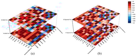 Table 3. Ultimately, 8 out of the 10 RGB-VI features and 11 out of the 13 S-VI features were selected as the feature combinations for this study.