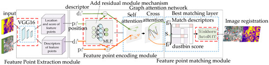 This network model takes feature points and their descriptors from two images as inputs and outputs the matching relationships between these feature points. This process essentially involves determining the local correspondence and matching method between two sets of data points. The solution of the AutoDiff algorithm could deal with accuracy. This approach can solve some of the difficulties encountered in traditional methods, such as multiple feature points in the source image being incorrectly matched with the same feature point in the target image, especially in the natural heterogeneous image.