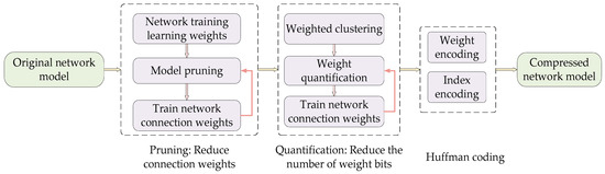 We conduct network pruning and compression operations to obtain fewer parameters and less computation while maintaining the model’s performance. The method is to remove the connections below the threshold in the AD-ResSug model. We compress AD-ResSug through cutting the connections with small value weights. The specific steps of network pruning are shown in Figure 6.