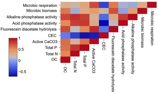 Correlation matrix of the principal chemical-physical and microbiological characteristics of the tested soils.