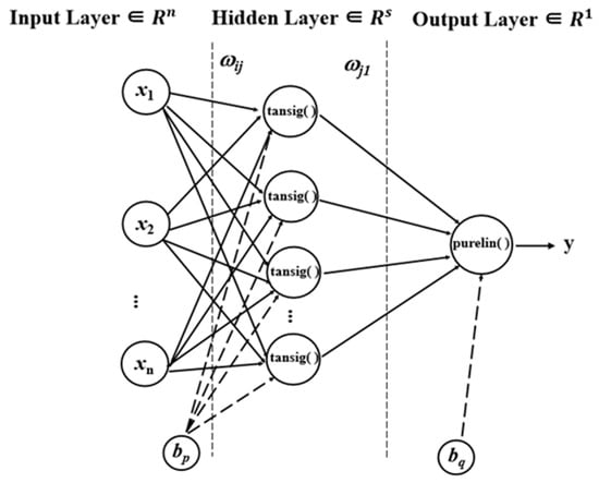 where is the number of input variables; is the number of output variables (here is taken as 1); and is a constant (ranging from 1 to 11). The optimal neuron number of the hidden layers is determined with the trial-and-error method.
