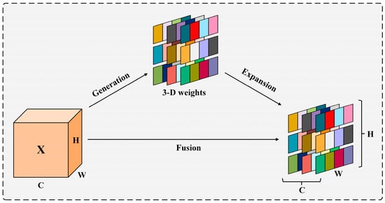 Equation (5) indicates that the lower the energy of a neuron, the more pronounced its difference from the surrounding neurons, and consequently, the greater its importance. Therefore, a neuron’s importance can be determined by . To effectively highlight key features, the attention mechanism should reinforce these features.