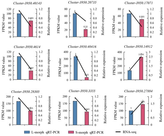 3.8. Validation of Gene Expression Levels in L-Morph and S-Morph