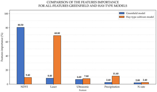 Comparison of the feature’s importance for the all-features Greenfield and hay-type models.