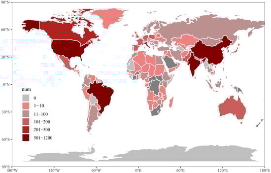 Global statistics on research papers related to green manure (data sourced from Web of Science). The degree of color depth represents the number of published papers, and the latest date of the published papers is November 2024.