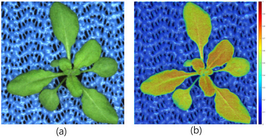 Example of the activation map of the end-to-end plant area-predicting model: (a) original image, (b) activation map of the first relu network layer.