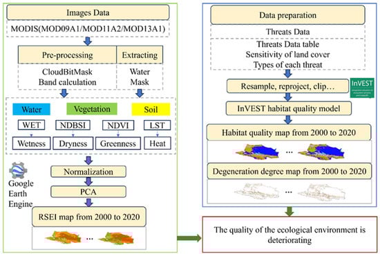 - Xu, H.; Wang, Y.; Guan, H.; Shi, T.; Hu, X. Detecting Ecological Changes with a Remote Sensing Based Ecological Index (RSEI) Produced Time Series and Change Vector Analysis. Remote Sens. 2019, 11, 2345. [Google Scholar] [CrossRef]