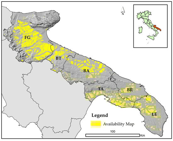 Considering the entire territory of the Apulia region, a GIS-based assessment of “land availability” was carried out by applying the procedures described in the following sub-sections.