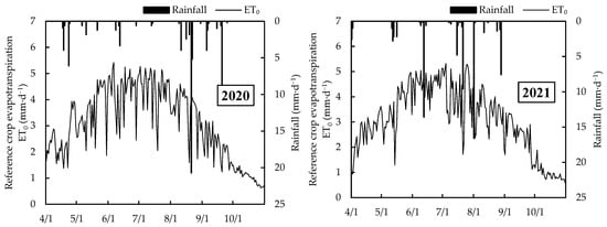 The reference crop evapotranspiration and rainfall from 2020 to 2021.