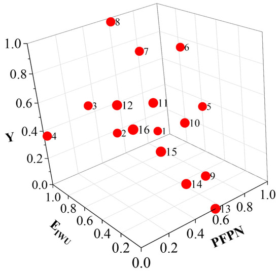 | Program Number | Irrigation Quota (mm) | Nitrogen Application (kg/ha) | Y (kg/ha) | PFPN | IWUE |