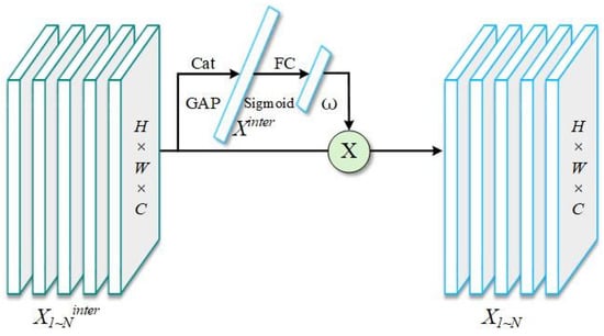 Among them, and represent two fully connected layers, denotes the sigmoid activation function. is the result obtained by performing average pooling on , while is obtained by performing a concatenate operation on .