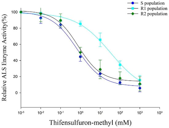 3.4. Effects of Thifensulfuron-Methyl on Vitro ALS Enzyme Activity