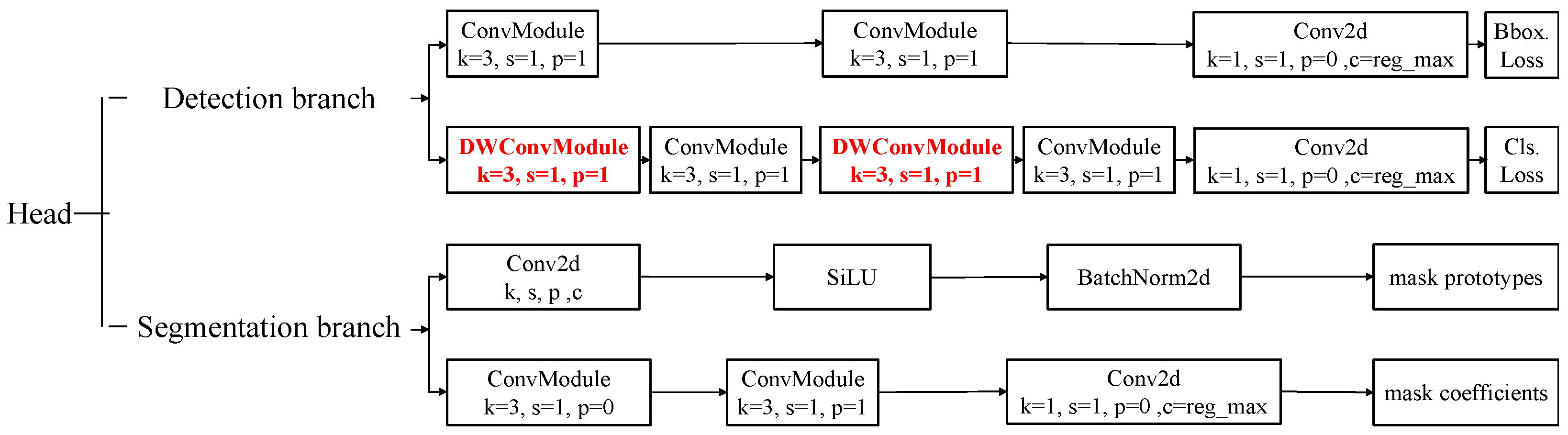 The YOLOv8-seg segmentation head inherits the architecture of the YOLACT segmentation head and introduces a segmentation branch alongside the object detection branch [