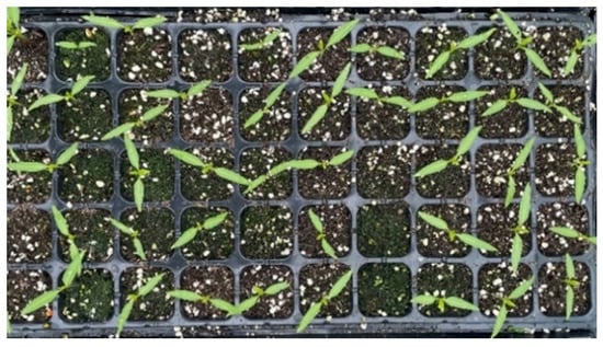 Chili pepper seedlings at the two-leaf-one-heart period.