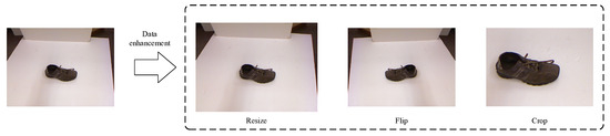 The LRGN is first trained and evaluated on the Cornell dataset [10]. The Cornell dataset is a publicly available dataset commonly used in robot grasping research, first released by Cornell University. The dataset contains a rich set of images and related grasp position information for training and testing deep learning models, and is widely used in the task of robotic manipulators grasping objects, especially in visually recognizing objects and determining appropriate grasp positions. The Cornell dataset contains 885 RGB images and depth images of 240 real objects in different positions and poses, each with a resolution of 640 × 480, and multiple labeled grasping rectangular boxes are provided in each image. The Cornell dataset is divided into two sub-datasets according to the image-wise and object-wise to validate the model’s discriminative and generalization ability. Image-wise splitting divides the dataset randomly, which is used to test the model’s ability to discriminate the grasping of objects with different angles and positions; object-wise splitting divides the images of the same object but with different angles into separate training or test sets, ensuring that the objects in the test set have not appeared in the training set, in order to validate the network’s ability to generalize the network in grasping unknown objects. Due to the small size of the Cornell dataset, in order to prevent the network from being trained to overfit, this paper uses flipping, cropping, and random scaling to enhance the data, as shown in Figure 11. The enhanced results are shown in Table 1. In this experiment, only RGB images are used as inputs, and the training and test sets are divided in a ratio of 4:1 and relabeled using a method established in the literature [17].