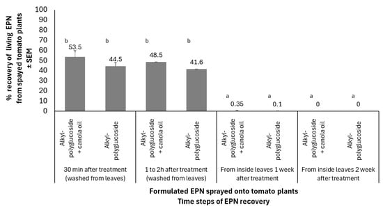 - Waweru, B.W.; Kajuga, J.N.; Hategekimana, A.; Ndereyimana, A.; Kankundiye, L.; Umulisa, C.; Nyombayire, A.; Mutumwinka, M.; Ishimwe, P.M.; Bazagwira, D. Formulation of Entomopathogenic Nematodes for Above-Ground Use Against Tomato Leaf Miner, Phthorimaea absoluta. Insects 2025, 16, 189. [Google Scholar] [CrossRef]