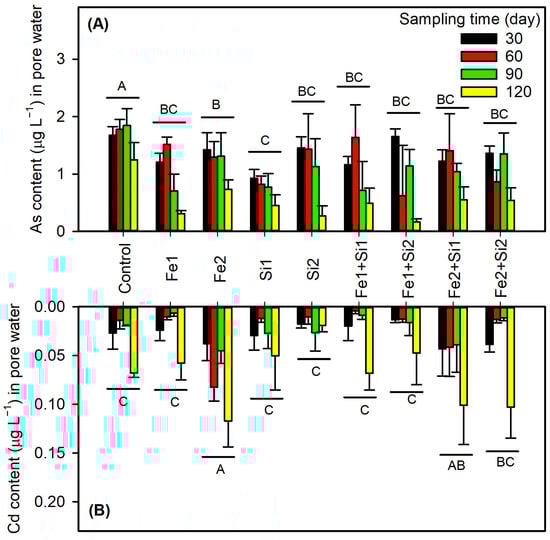 3.3. Changes in Soil pH and As and Cd in Pore Water