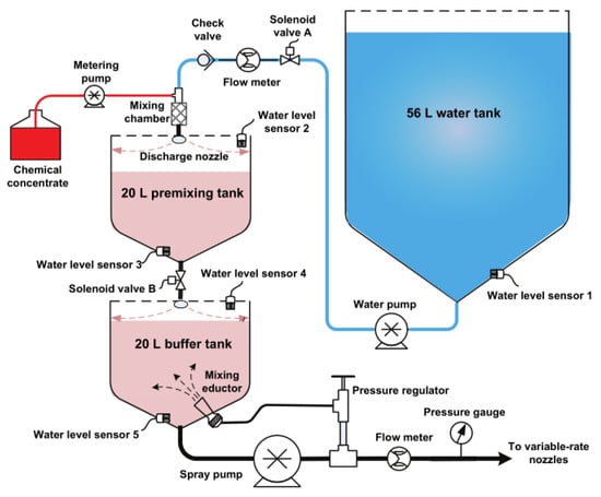 - Chen, Y.; Chen, Y.; Guo, P.; Zhang, S.; Jin, H.; Adilet, S.; Chen, J. Design and experimentation of direct injection in-line mixing control system for sprayers. Comput. Electron. Agr. 2024, 226, 109304. [Google Scholar] [CrossRef]