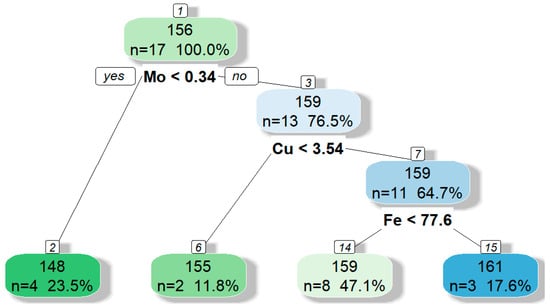 The tree in Figure 4 shows the critical threshold values for the concentration of micronutrients affecting maize dry matter yields in loamy soils.