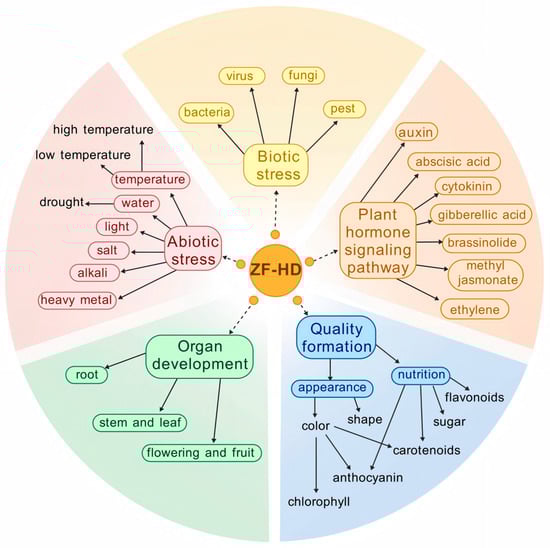 APA StyleShen, A.-Q., Lv, M.-Y., Ge, Y.-X., Zhou, J., Hu, Z.-Z., Ren, X.-Q., Xiong, A.-S., & Wang, G.-L. (2025). Zinc Finger-Homeodomain Transcription Factor: A New Player in Plant Growth, Stress Response, and Quality Regulation. Agronomy, 15(7), 1522. https://doi.org/10.3390/agronomy15071522