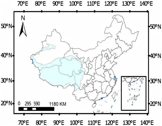 The map of the sampling point. Note: The light blue area indicates the location of the Qinghai–Tibet Plateau in China, and the red points represent the sample points where we collected seeds for this experiment.