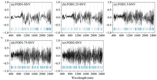 | Spectral Pre-Processing | Number of Feature Wavelengths | Maximum Positive r | Maximum Negative r | ||