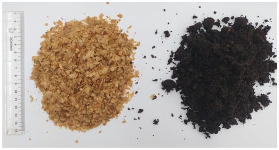 The coffee silverskin (CS, left) and peat-based horticultural substrate (right) used in the experiment.