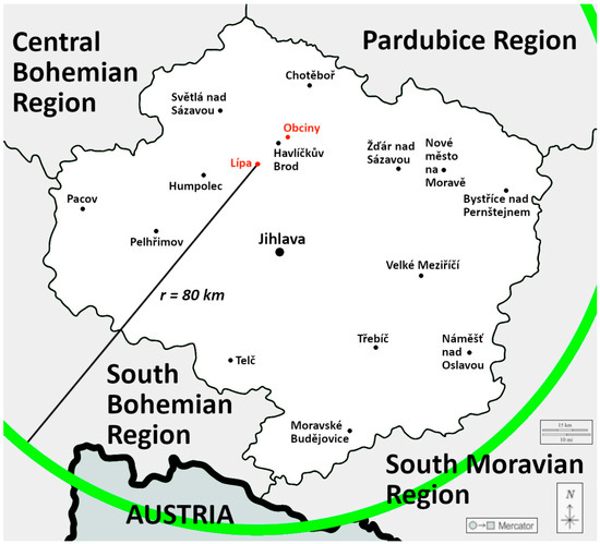 Map of the location of the suction trap (Lípa) and the yellow water trap (Obciny) for monitoring aphid flight activity.