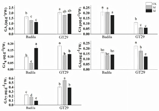 - Ueguchi-Tanaka, M.; Nakajima, M.; Motoyuki, A.; Matsuoka, M. Gibberellin receptor and its role in gibberellin signaling in plants. Annu. Rev. Plant Biol. 2007, 58, 183–198. [Google Scholar] [CrossRef]