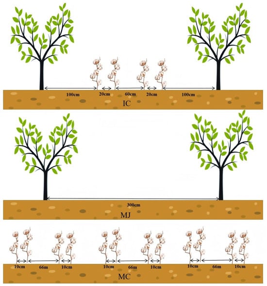- Wang, J.B.; Chen, G.D.; Wang, P.J.; Cui, Z.J.; Wan, S.M.; Zhai, Y.L.; Li, T.T.; Zhao, Y.R. Optimizing Cotton Row Configuration in Jujube–Cotton Intercropping Systems Improves Their Productivity, Net Effects, and Sustainability. Agronomy 2024, 14, 1216. [Google Scholar] [CrossRef]