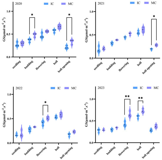 3.3. The Effect of Jujube–Cotton Intercropping on Cotton Stomatal Conductance