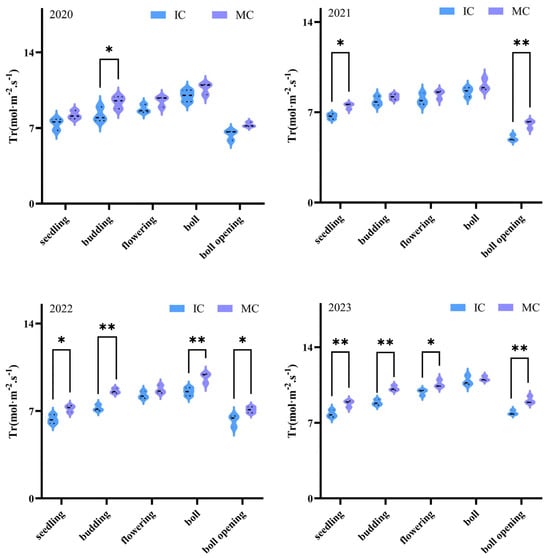 3.5. The Effect of Jujube–Cotton Intercropping on Cotton Transpiration Rate