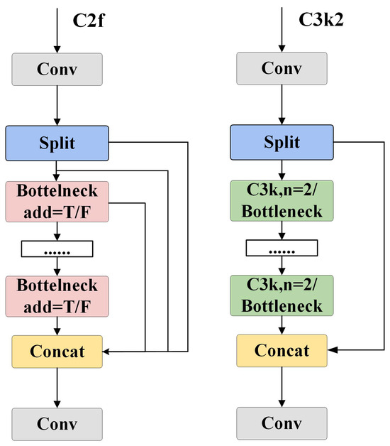 Structure comparison of C2f module and C3k2 module.