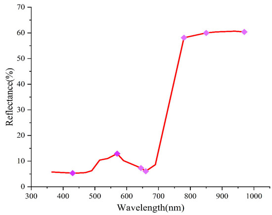 To improve the model accuracy and reduce computational time, this study employed SPA for data dimensionality reduction, focusing on the seven most influential bands (430, 570, 645, 660, 780, 850, and 970 nm). The feature bands selected by the successive projection algorithm are illustrated in Figure 6.