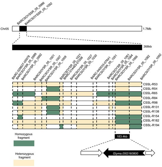 Based on the existing CSSL genetic map, we performed chromosome segment insertion analysis on CSSLs displaying extreme phenotypes. This analysis incorporated reference data from the Soybase Bin map and SSR markers to facilitate the narrowing down of candidate QTL regions.