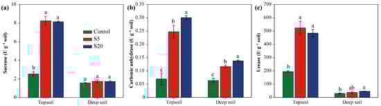 3.4. Soil Enzyme Activities of Topsoil and Deep Soil