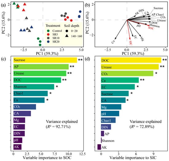 4.2. Effects of Straw Return on SIC in Topsoil and Deep Soil Layers