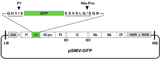 2.2. Construction of the GFP-Tagged SMV Recombinant Virus