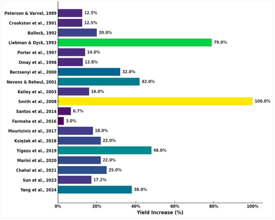 As shown in Figure 2, crop yields in rotation systems comprising soybean and corn were higher than in continuous cropping, underscoring the advantages of rotational techniques for productivity [155].