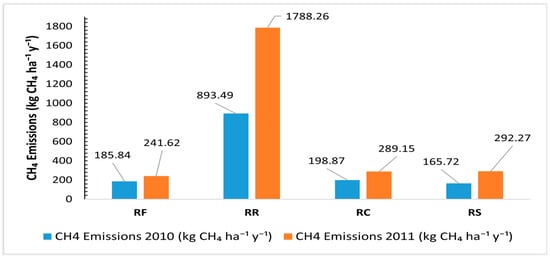 - Cha-un, N.; Chidthaisong, A.; Yagi, K.; Sudo, S.; Towprayoon, S. Greenhouse gas emissions, soil carbon sequestration and crop yields in a rain-fed rice field with crop rotation management. Agric. Ecosyst. Environ. 2017, 237, 109–120. [Google Scholar] [CrossRef]