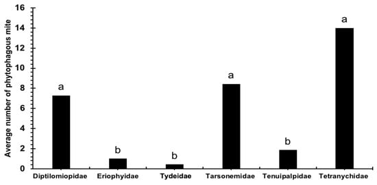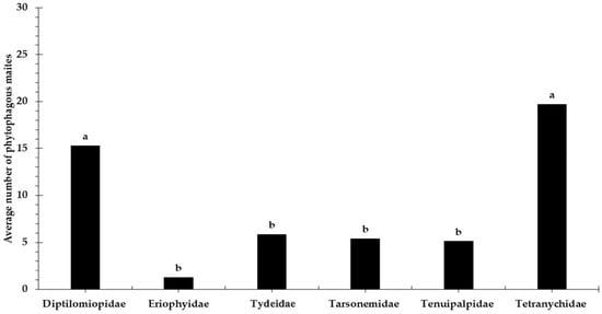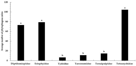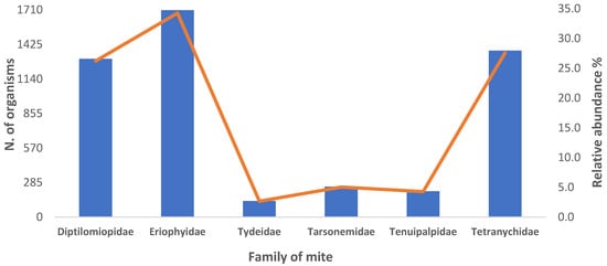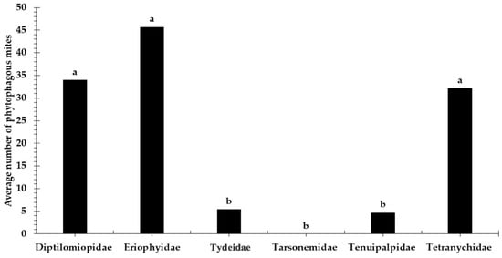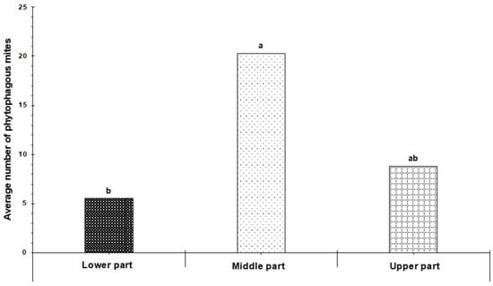 3.2. Spatial Distribution of Phytophagous Mite Families on Cultivated Blackberry Plants