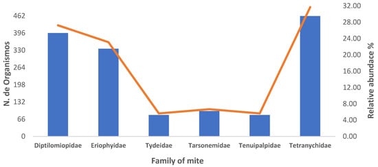 - Vargas-Madriz, H.; Acuña-Soto, J.A.; Rodríguez-Bautista, G.; Grifaldo-Alcantará, P.F.; García-Escamilla, P.; Lázaro-Dzul, M.O. Fluctuación Poblacional de Familias de Ácaros Asociados a Plantas de Zarzamora (Rubus fruticosus). Ecosistemas Recur. Agropecu. 2020, 7, 201–212. [Google Scholar]