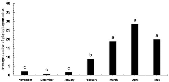 3.3. Relative Abundance and Population Fluctuation of Phytophagous Mite Families on Wild Blackberry (Rubus spp. L.)