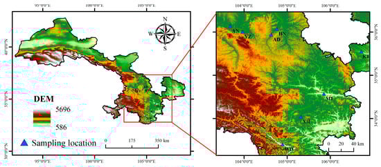 Location map of the study area and sampling sites in Gansu Province of China (Image procured from ArcGIS 10.8 software).