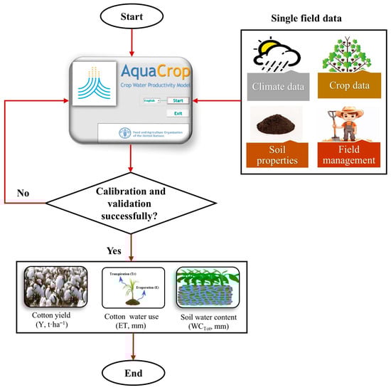 - Tan, S.; Wang, Q.; Zhang, J.; Chen, Y.; Shan, Y.; Xu, D. Performance of AquaCrop Model for Cotton Growth Simulation under Film-Mulched Drip Irrigation in Southern Xinjiang, China. Agric. Water Manag. 2018, 196, 99–113. [Google Scholar] [CrossRef]